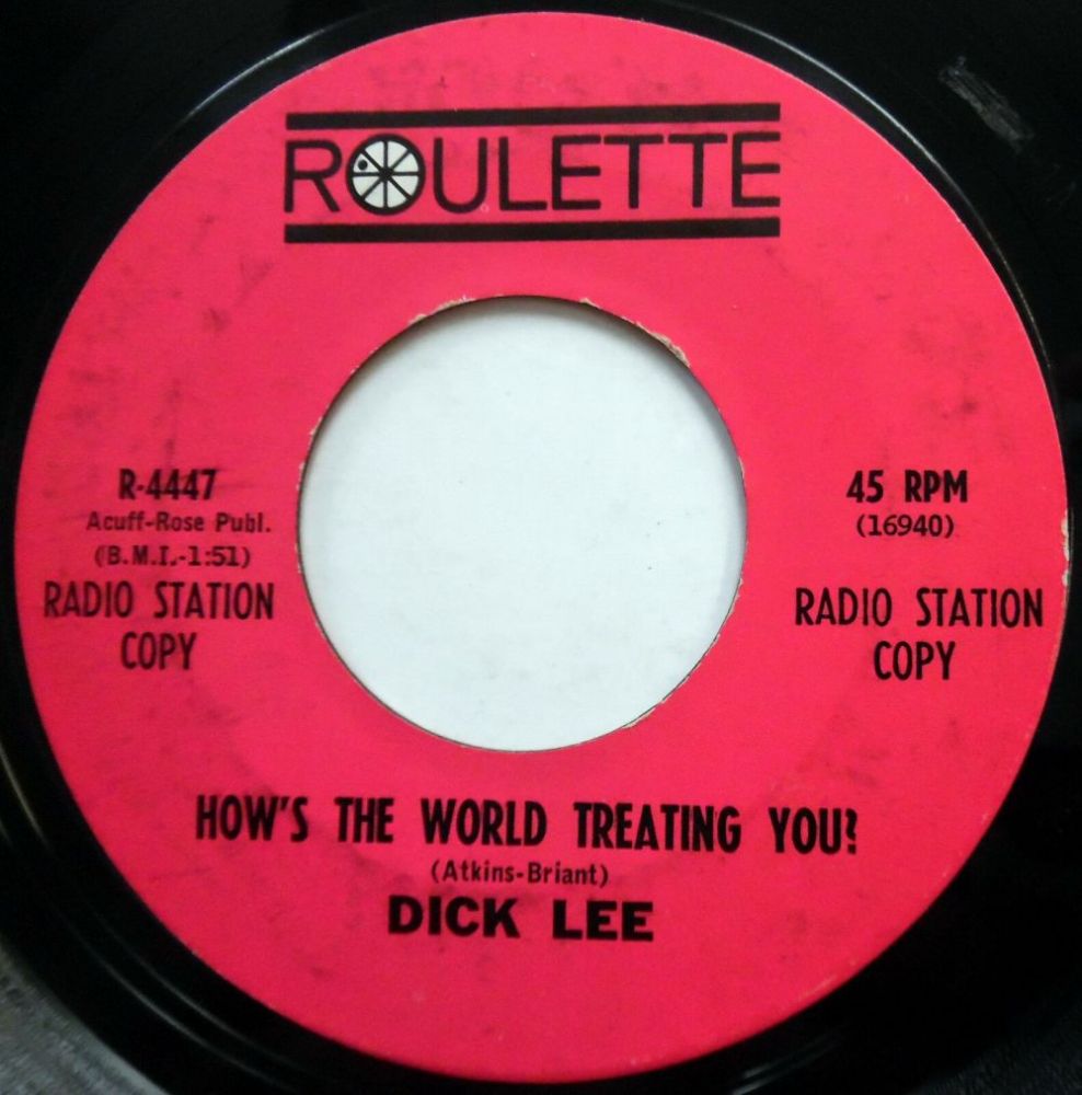 Im Jahre 1962 wurden GONE und END durch Verkauf zu Tochter-Labels von ROULETTE, was mich zu folgender Vermutung führte. Diese Dick Lee-Single sollte ursprünglich auf GONE veröffentlicht werden und aus einen mir derzeit unbekannten Grund, erfolgte die Veröffentlichung dann doch auf dem Haupt-Label wie folgt: ROULETTE 08 62....R-4447....DICK LEE..How's The World Treating You? (16940)/All I Do Is Dream Of You (16941)