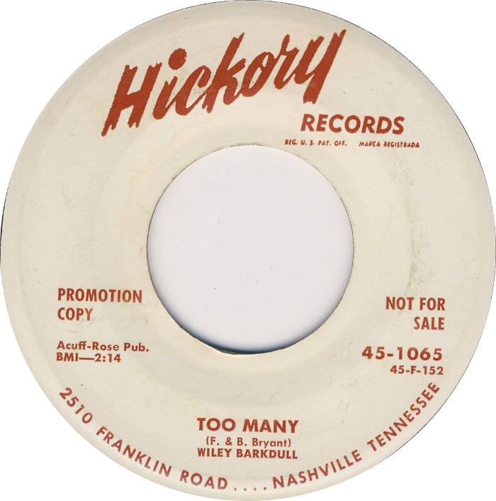 Barkdulls Soloaufnahmen für Hickory (insgesamt acht Singles) sind eine Mischung aus Country im Stil von Lefty Frizzell, Western Swing und Rockabilly. Zu den Songs der letzteren Kategorie gehören die großartige Doppel-A-Seite „Hey Honey“/„I Ain't Gonna Waste My Time“ und „Too Many“, das von Ocie Smith gecovert wurde (dessen Version in Großbritannien von London veröffentlicht wurde, während das Original in Großbritannien unveröffentlicht blieb). „Too Many“ (geschrieben von Boudleaux und Felice Bryant) besticht durch einen mitreißenden Gitarren-Groove von Hank Garland und Ray Edenton, feine Percussion-Klänge von Buddy Harman und Lightnin' Chance sowie ein Klaviersolo von Floyd Cramer.