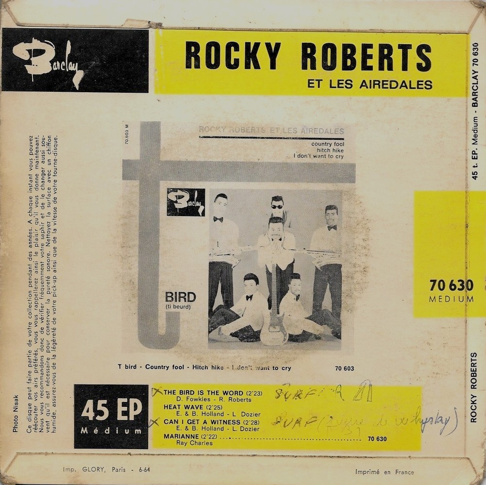 Während eines Konzerts in Frankreich wurden sie von einem Manager von Barclay entdeckt, der ihnen einen Vertrag in den ATCO Studios in New York City anbot. Dort nahmen sie eine Reihe von Singles und EPs auf, die ab 1960 (in Italien von Vis Radio) unter dem Namen Rocker Roberts with Doug Fowlkes and the Airedales veröffentlicht wurden. 1963 formierte sich die Band unter dem Namen Rocky Roberts and The Airedales neu, mit Doug Fowlkes als Produzent und Manager. Roberts erlangte in Frankreich große Popularität, indem er Klassiker von Stax und Motown spielte und schließlich 1964 die internationale Rock-'n'-Roll-Meisterschaft in Cannes gewann.