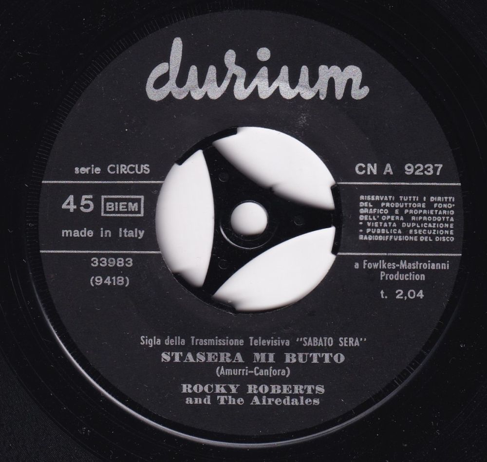 bevor er zu Durium Records wechselte. Neben diversen Fernsehauftritten und Live-Veranstaltungen sang Rocky den Titelsong des Films „Django Unchained“ von 1966. Quentin Tarantino verwendete die Aufnahme später als Titelmelodie für seinen Film „Django Unchained“ aus dem Jahr 2012. 1967 landete Roberts mit „Stasera Mi Butto“ einen großen Hit in Italien, der sich 3,7 Millionen Mal verkaufte und den Festivalbar gewann. Der Song hielt sich fünf Monate lang in den Charts, und sein Erfolg führte 1967 zu einem gleichnamigen Film mit Roberts in der Hauptrolle. Anschließend wirkte er in mehreren weiteren italienischen Filmen mit.