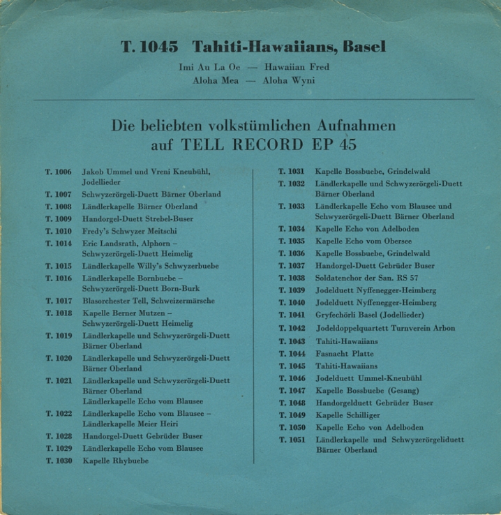 Die Hula Hawaiians Single unten hatte ich vorher ganz übersehen. Das sind glaub jetzt aber bereits schon all meine Tell 50s Singles gewesen. Die 7" EPs habe ich soweit noch nicht gelistet. 10" Platten hat es auch gegeben. Vorallem aber massenweise 78T Platten!