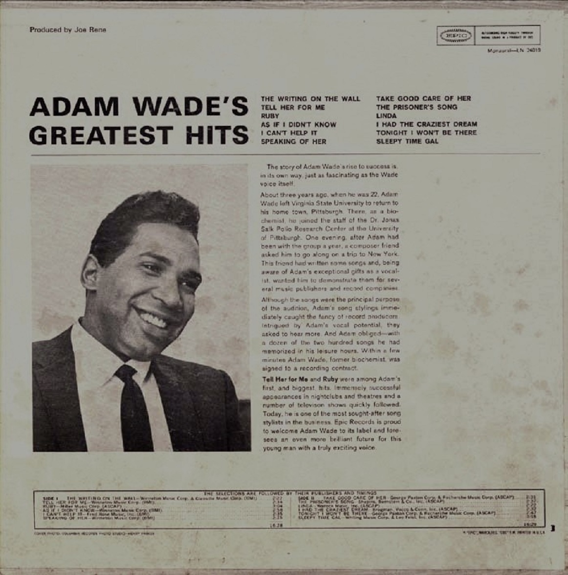 EPIC MEMORY LANE 08 63....5-2208....ADAM WADE..The Writing On The Wall (ZSP 75299)/Ruby (ZSP 75300) (06 62: LP 24019)