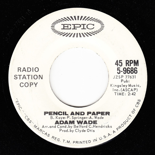 Ich fand einen einzigen Titel mit diesem Autoren-Trio, der auch von Adam Wade veröffentlichte wurde: "Pencil And Paper" vom Mai 1964, EPIC 5-9686.