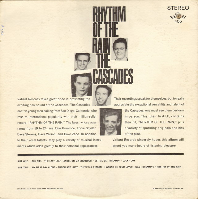 ?? 63....A 6026....THE CASCADES..Rhythm Of The Rain/Let Me Be (VALIANT 6026)