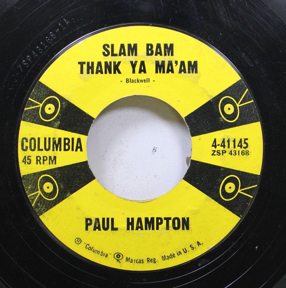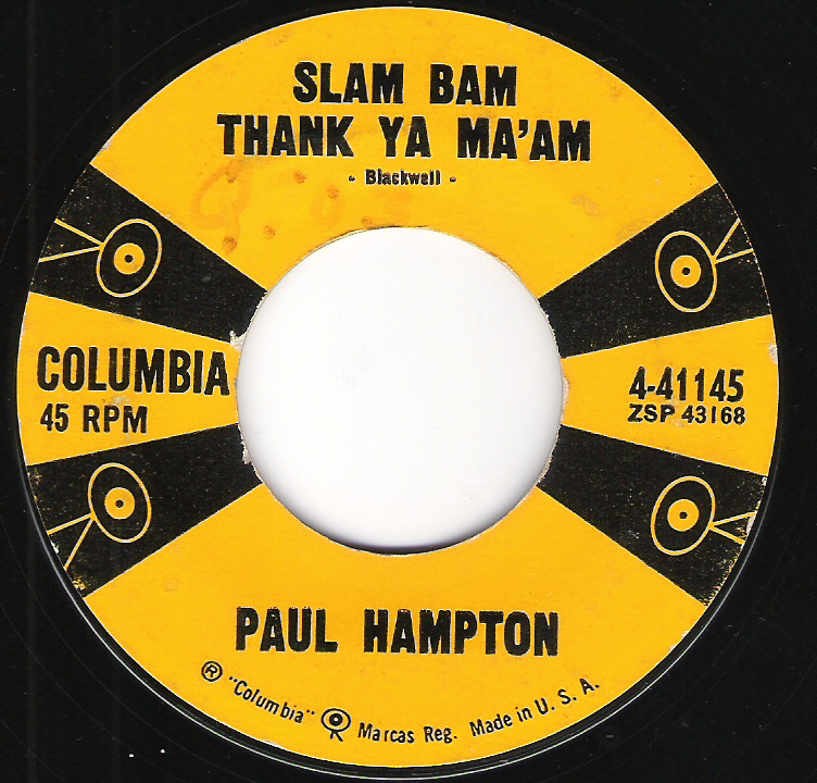 Hallo, hier Paul Hamptons dritte Columbia-Single (leider durch ein Pickerl verunziert): "Live A Life Of Love" / "Slam Bam Thank Ya Ma'am" (Columbia 4-41145, 1958) MfG, Volker Anhänge an diesem Beitrag Dateiname: Columbia_4-41145_Label_Back.jpg Dateigröße: 390.35 KB Titel: Columbia_4-41145_Label_Back.jpg Heruntergeladen: 235 Dateiname: Columbia_4-41145_Label_Front.jpg Dateigröße: 399.53 KB Titel: Columbia_4-41145_Label_Front.jpg Heruntergeladen: 273