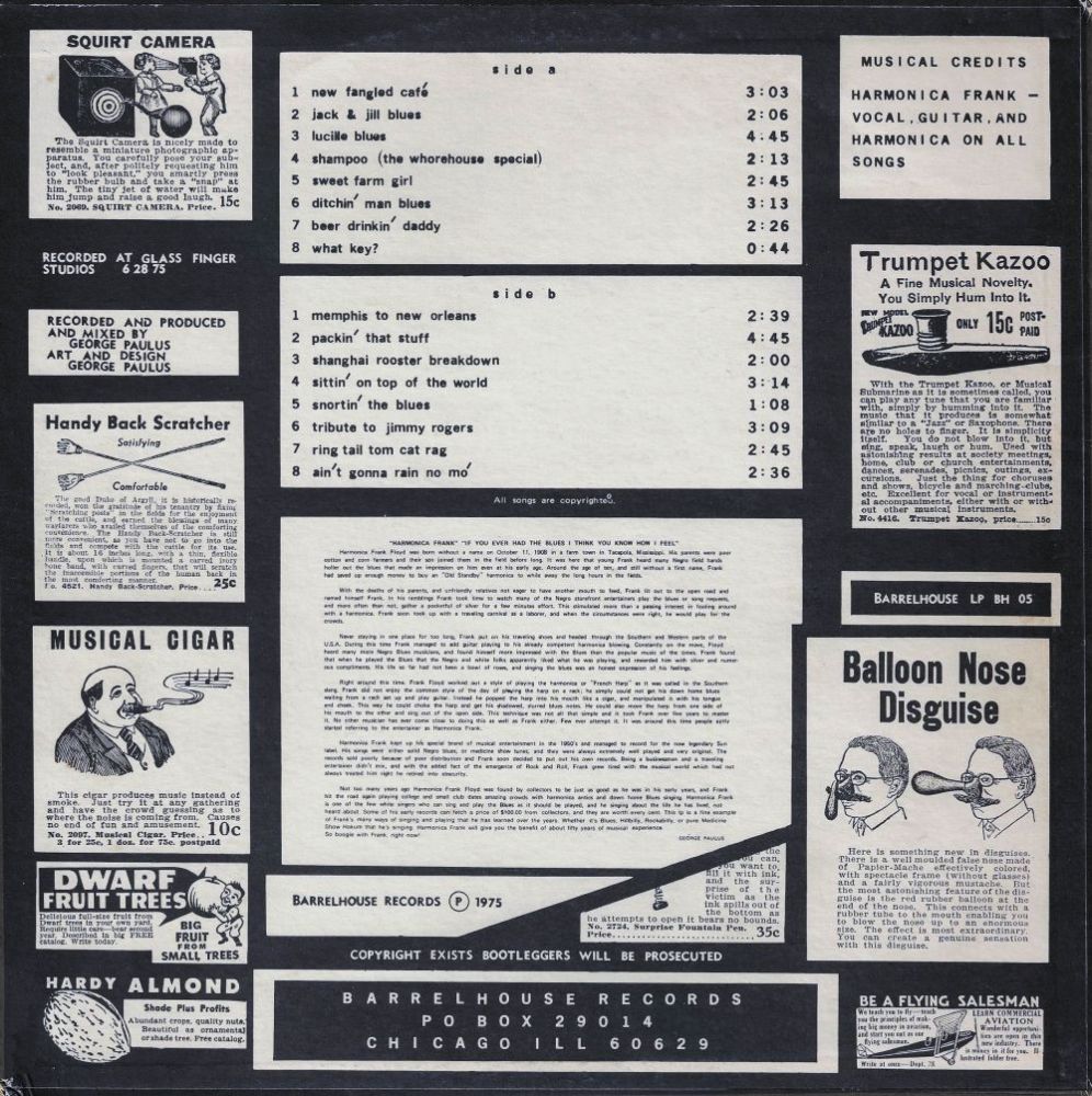 Der weiße Bluessänger, Gitarrist und Harmonikaspieler Harmonica Frank wurde am 11. Oktober 1908 in Toccopola, Mississippi, als Frank Floyd geboren und verstarb am 7. August 1984 in Blanchester, Ohio.