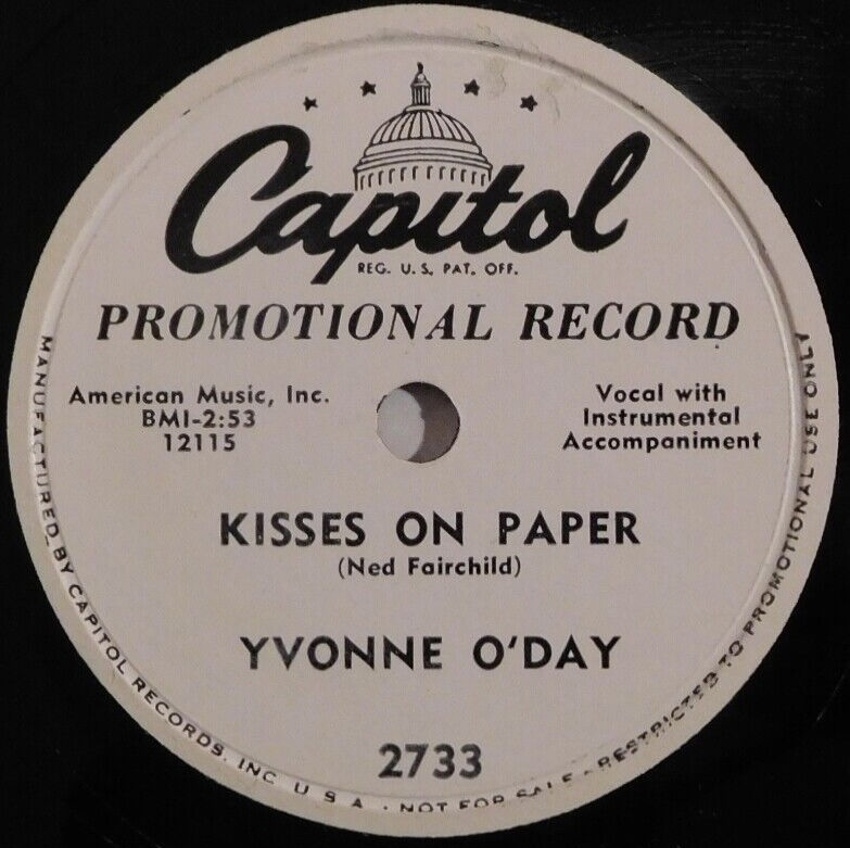 02 54....F2733....YVONNE O'DAY..Baby, I Go For You (45-12114)/Kisses On Paper (45-12115)