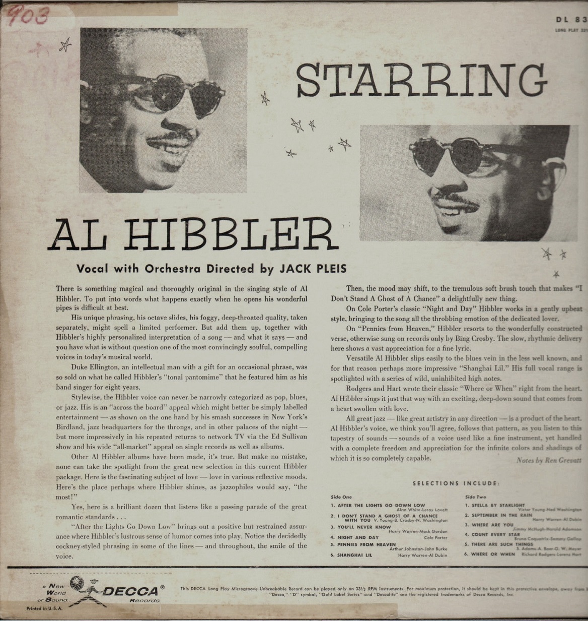 10 57....9-30483....AL HIBBLER With JACK PLEIS AND HIS ORCHESTRA..Wish (103,405)/AL HIBBLER With RAY CHARLES SINGERS..The Crying Wind (And I) (102,771)