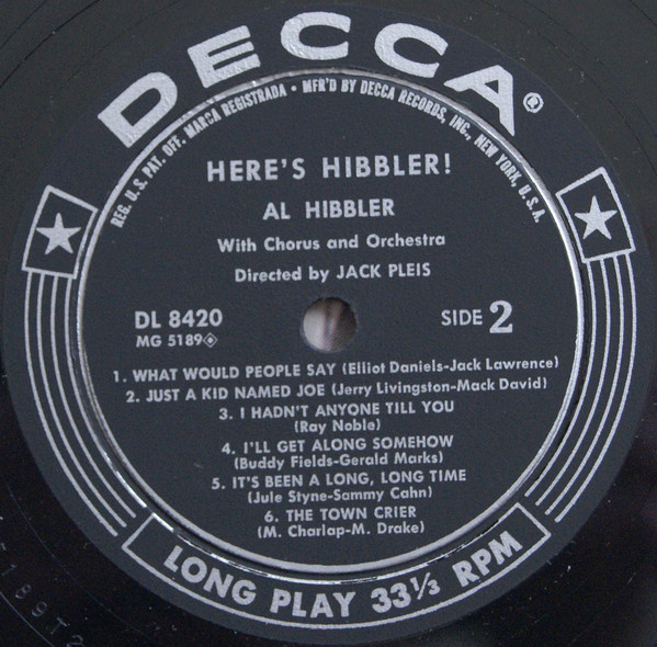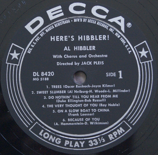 03 57....9-30268....AL HIBBLER..Because Of You (45-L 9624)/Sweet Slumber (45-L 9603)