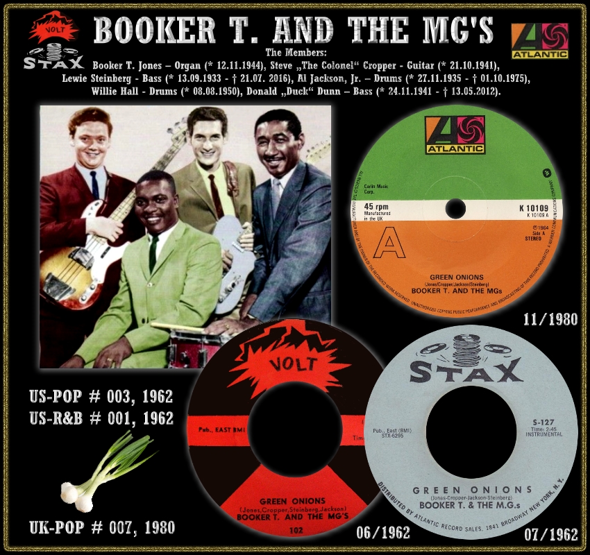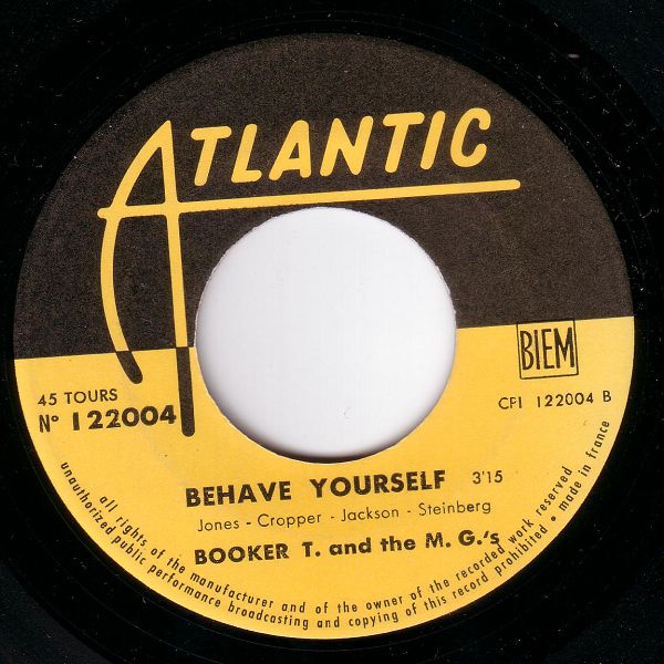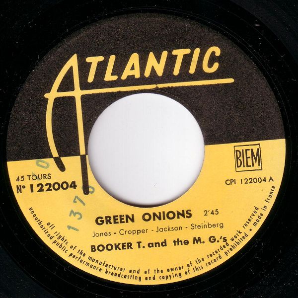 Booker T's erste Platte wurde 1961 auf VOLT 102 veröffentlicht. Mit STAX 127 kam er im August 1962 in die Charts und kletterte hinauf auf Platz drei. Bei uns gab es diese Single auf ATLANTIC ATL 70.089. Hier nun die französische Ausgabe