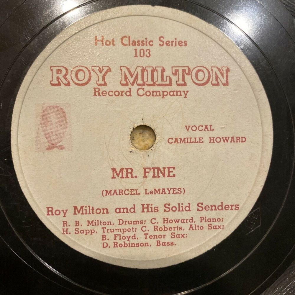 ?? 46....103....Roy Milton and His Solid Senders VOCAL CAMILLE HOWARD - R. B. Milton, Drums; C. Howard, Piano; H. Sapp, Trumpet; C. Roberts, Alto Sax; B. Floyd, Tenor Sax; D. Robinson, Bass. ..Mr. Fine/ROY MILTON..Milton’s Boogie