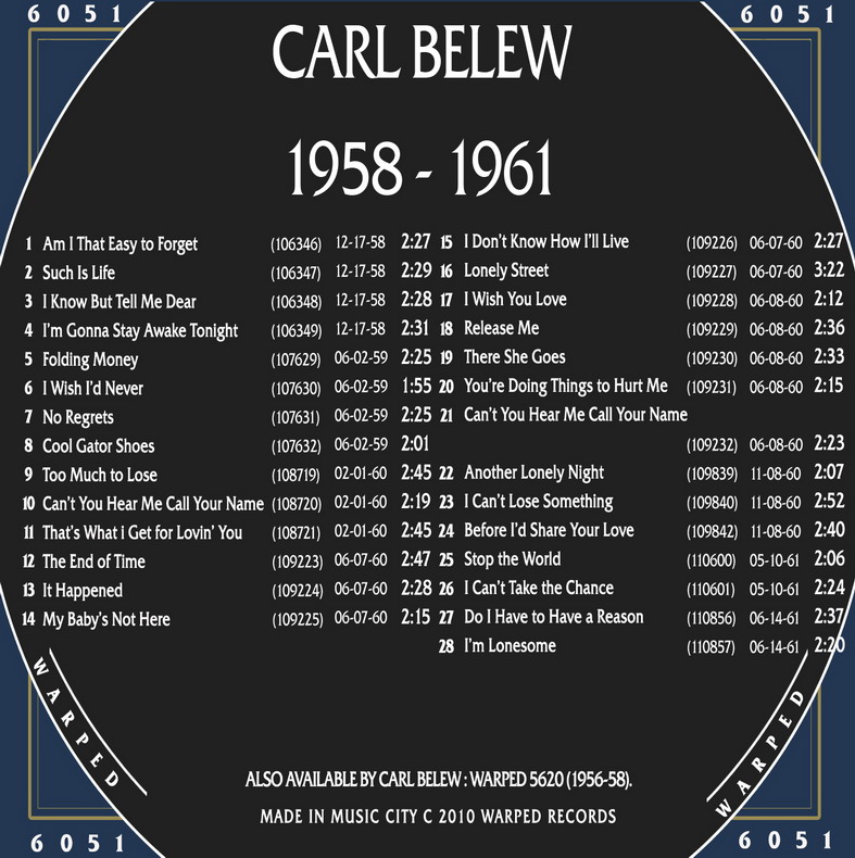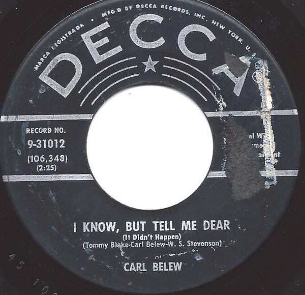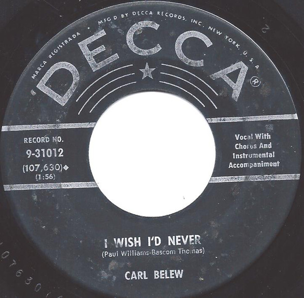 12 59....9-31012....CARL BELEW..I Wish I'd Never (107,630)/I Know, But Tell Me Dear (It Didn't Happen) (106,348)