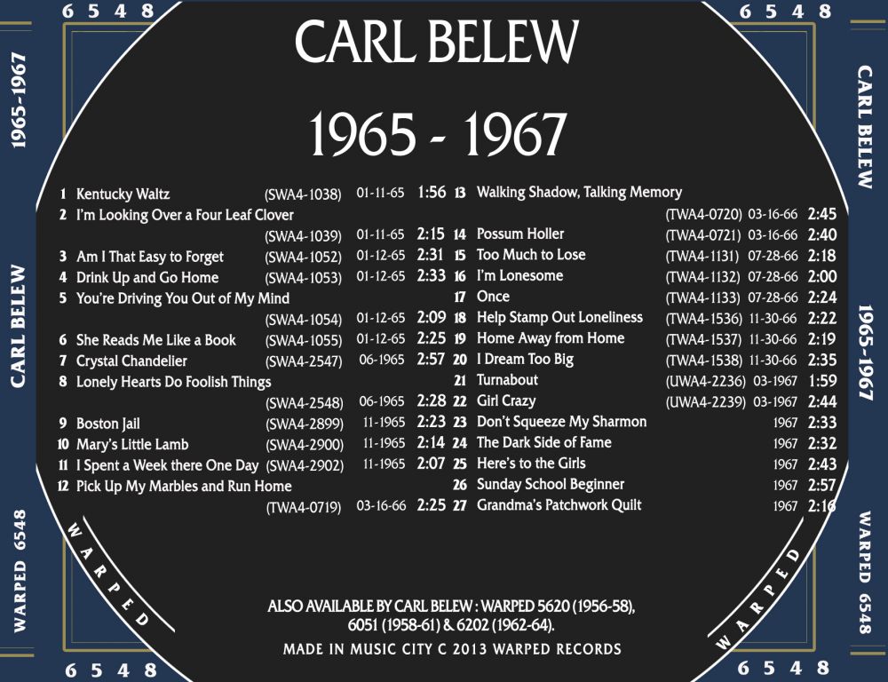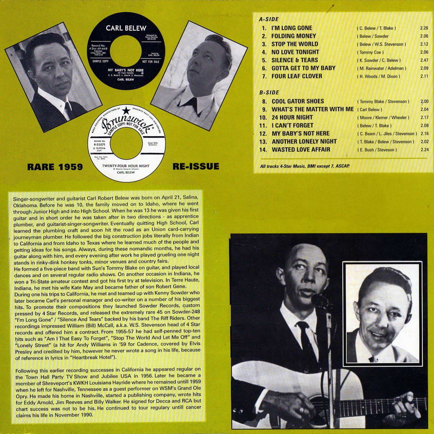 Der Sänger, Gitarrist und Songwriter Carl Belew wurde am 21. April 1931 in Salina, Oklahoma, als Carl Robert Belew geboren und verstarb am 31. Oktober 1990 erst 59-jährig ebenda an einem Krebsleiden.