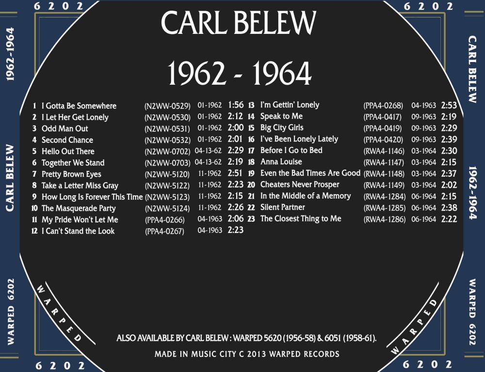 09 62....31427....CARL BELEW Vocal With Instrumental Accompaniment..Can't You Hear Me Call Your Name (109,232)/CARL BELEW Vocal With Chorus And Instrumental Accompaniment..I Don't Know How I'll Live (And Feel This Way) (110,857)