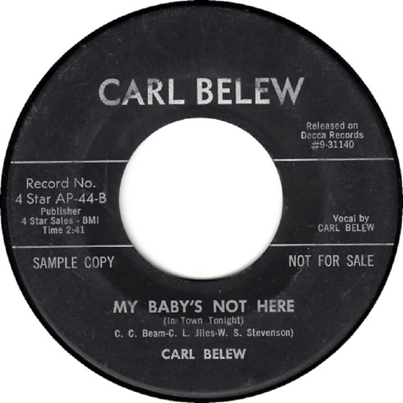 08 60....9-31140....CARL BELEW Vocal With Chorus And Instrumental Accompaniment..My Baby's Not Here (In Town Tonight) (109,225)/The End Of Time (109,223) (4 STAR 44)
