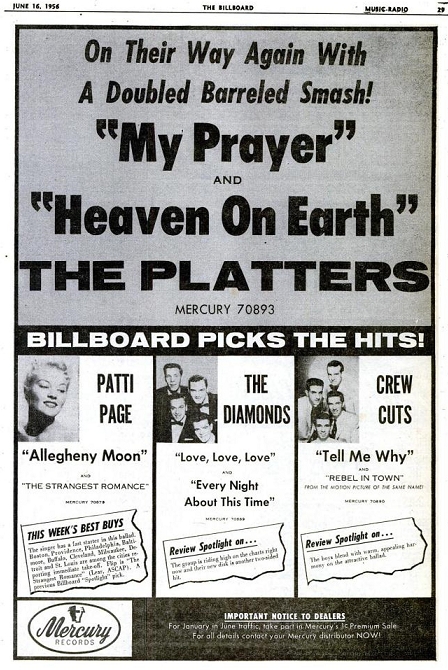 Ihr Label, Mercury Records, wollte aber dennoch nicht von der bisherigen Praxis abweichen und produzierte von 1956 bis Anfang der 60er Jahre mit einer weiteren kanadischen Vocal Group, The Diamonds, Cover-Hit auf Cover-Hit.