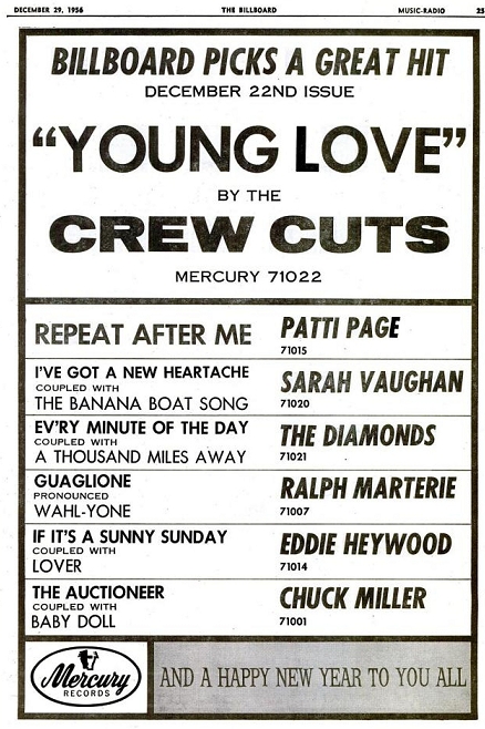 ich bin begeistert über die Werbebilder und Sheets als jpg's. Da kann ich meine Abhandlung über The Crew Cuts wunderbar bebildern. Meine Zeilen möchte ich im Folgenden darstellen: