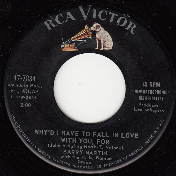 01 61....47-7834....BARRY MARTIN with the H. B. Barnum Group..Why'd I Have To Fall In Love With You, For (L2PW-3306)/Got A Whole Lot Of Loving To Do (L2PW-3303)