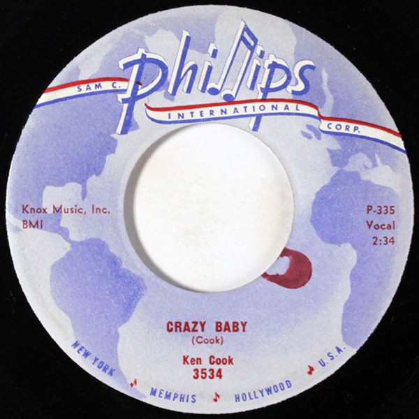Kenneth Ray Cook, * 13. Mai 1937 in Ranger/Texas, + 27. April 2004, stammte aus dem Umfeld von Roy Orbison, der ihn auch zu Sun Records vermittelte. Er hatte am 04. September 1958 seine Aufnahme-Session, aus der seine Platte “Crazy Baby“/“I Was A Fool“ auf Phillips International 3534 resultierte. Neben dem angestammten Session-Personal wirkte auch Roy Orbison an der Gitarre mit.