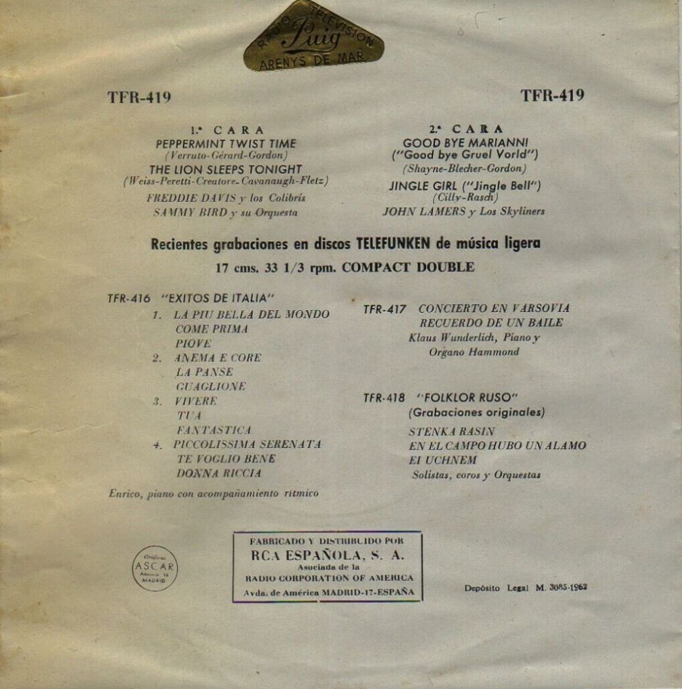 ?? 62....3039....JOHN LAMERS Cees and his Skyliners..Twist A Night (3039 A)/No Love Without Twist (3039 B)