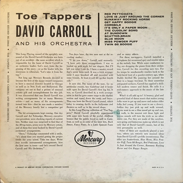 Der Orchesterleiter, Arrangeur und Komponist David Carroll wurde am 15. Oktober 1913 in Taylorville, Illinois, als Rodell Walter Schreier geboren und verstarb am 22. März 2008 in San Jose, Kalifornien. Als Rocknroller ist er uns in erster Linie auf dem MERCURY-Label als Begleitorchester für so bekannte Interpreten wie Rusty Draper, Jim Lowe, The Crew-Cuts, The Diamonds und viele Andere bekannt. Er spielte aber auch eine Fülle von Instrumental-Aufnahmen, manchmal auch mit Orchester-Gesang, ein.