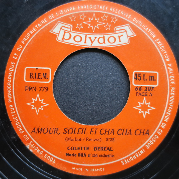 01 60....66 107....COLETTE DEREAL Mario BUA et son orchestre..Amour, soleil et cha cha cha/A cœur battant