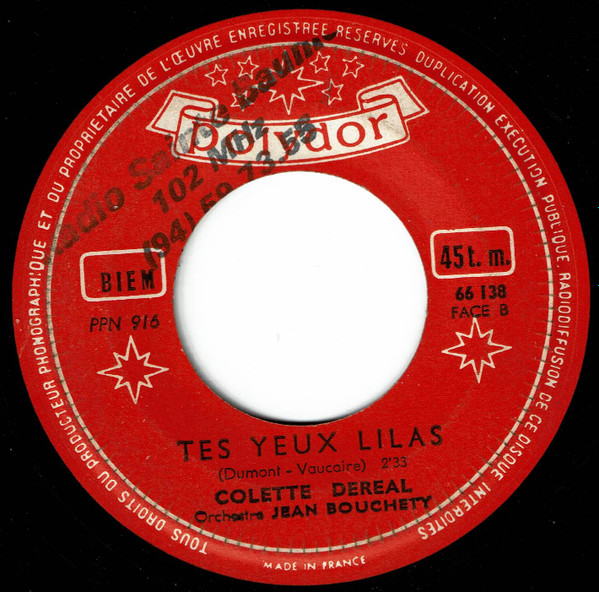 03 60....66 138....COLETTE DEREAL Jean Bouchety et son Orchestre..Les Gorilles/Tes yeux lilas