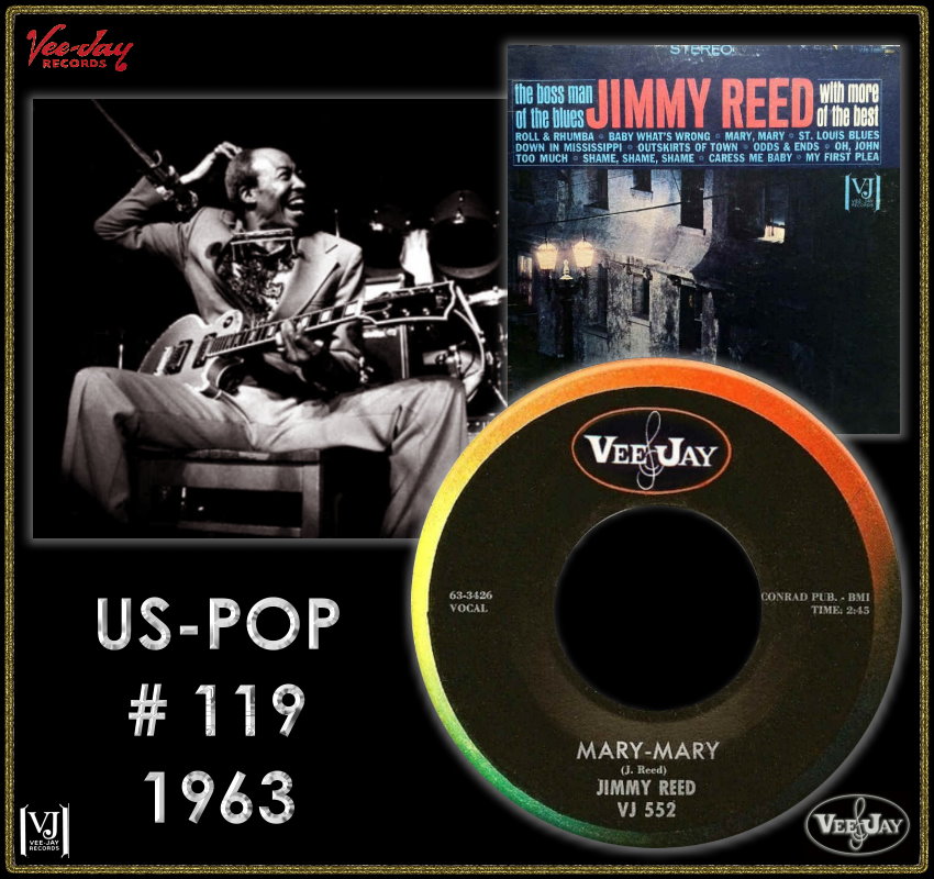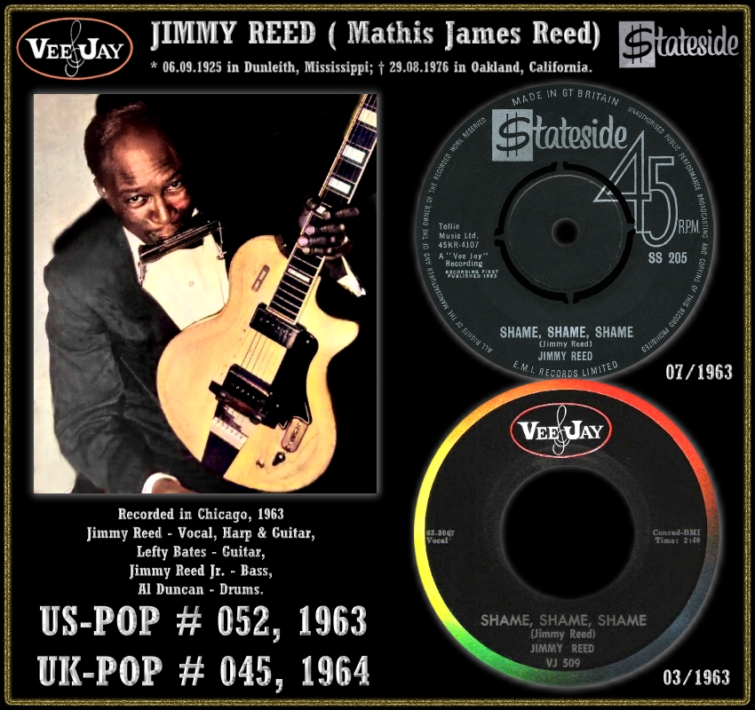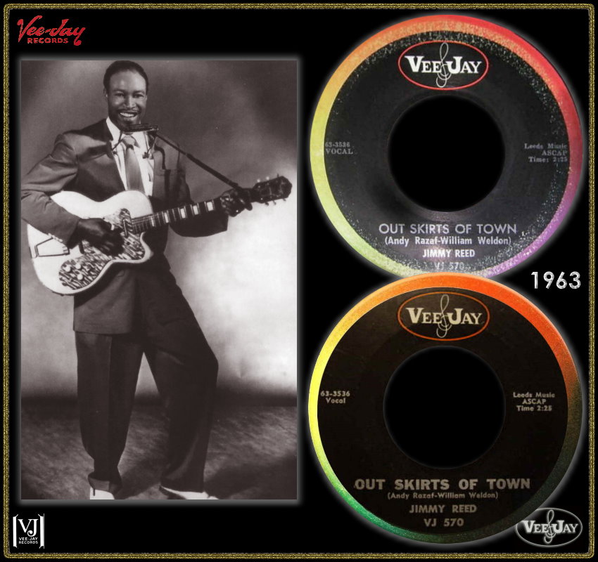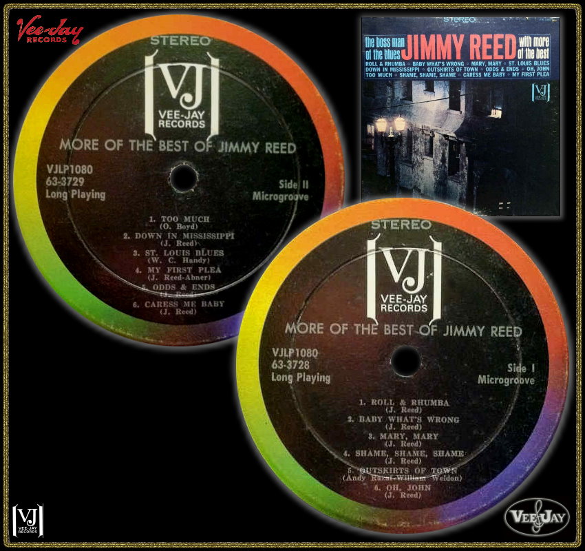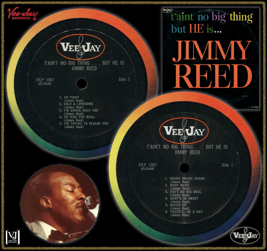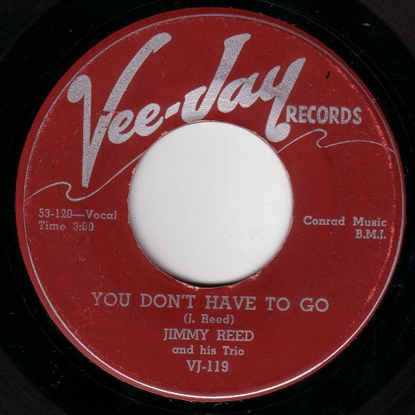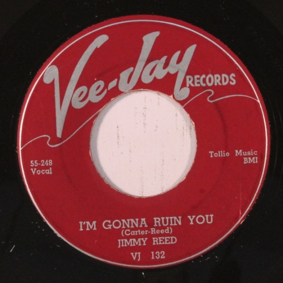 Dann hörte Reed von dem im April 1953 gegründeten Label Vee-Jay Records, das zunächst in seinem ehemaligen Wohn- und Arbeitsort Gary beheimatet war. Die Chefin Vivian Carter zeigte Interesse an Jimmy Reed. Sie ließ ihn im Haus ihrer Mutter einige Songs vorspielen und nach dem Abhören eniger Demos verpflichtete sie Jimmy für ihr Label. Am 29. Dezember 1953 fand mit Jimmy Reed & His Trio (& Eddie Taylor-b, Morris Wilkerson-d) eine erste Aufnahme-Session statt, in der noch einmal die Titel “High and Lonesome“/“Roll and Rhumba“ eingespielt wurden. Obwohl Vee-Jay zuvor im Mai bereits die Doo Wop-Gruppe The Spaniels aufgenommen hatte, entschied man sich, als erste Platte des Katalogs für Jimmy Reed (Vee-Jay 100) zu reservieren. Das Privileg nützte nichts, denn die Single konnte nach ihrer Veröffentlichung im Juli 1953 keine Chartnotiz erlangen, während The Spaniels aufVee-Jay 101 bis auf # 10 der Rhythm’n’Blues-Charts vordrangen. Erfolglos blieb auch seine nächste Single “I Found My Baby“/“Jimmy's Boogie (Vee-Jay 105), die im Januar 1954 auf den Markt kam. Aber bereits seine dritte Single Vee-Jay “You Don’t Have To Go“/“Boogie In The Dark“, die aus einer Aufnahmesession vom 30. Dezember 1953 stammte, kam nach ihrer Veröffentlichung im Oktober 1954 bis auf # 5 der Rhythm’n’Blues-Hitparade. Für Jimmy reed war nun völlig klar, dass er Berufsmusiker werden würde. Reed, der inzwischen gerade seine Arbeitsstelle gewechselt hatte, kündigte seinen Job. Mit # 3 schnitt die im Januar 1955 veröffentlichte Single “Ain’t That Lovin’ You Baby“/“Baby, Don't Say That No More“ auf Vee-Jay 168 noch besser ab. Dieselbe Platzierung erreichte auch “You've Got Me Dizzy“/“Honey, Don't Let Me Go“, die im November 1956 herausgebracht wurde. Ein erstes "cross over" gelang mit “The Sun Is Shining“/“Baby, What's On Your Mind“ (Vee-Jay 248), das nach seiner Veröffentlichung im Juni 1957 neben einem # 12 in den R&B-Charts auch bis auf # 65 der Pop-Hitparade gelangte. Umso erstaunlicher, denn es war zu einer Zeit, als der Blues in den Staaten in die musikalische Bedeutungslosigkeit gefallen war. Reeds bester "cross over" war dann das am 03. April 1957 aufgenommene “Honest I Do“/“Signals Of Love“, das nach seiner Veröffentlichung im Oktober 1957 einen # 32 in den Pop-Charts erreichte und bis auf # 4 der R&B-Charts vordringen konnte. Sein erfolgreichster Hit überhaupt wurde dann im August 1961 mit “Bright Lights, Big City“/“I'm Mr. Luck“ veröffentlicht und notierte # 3 der R&B-Charts.