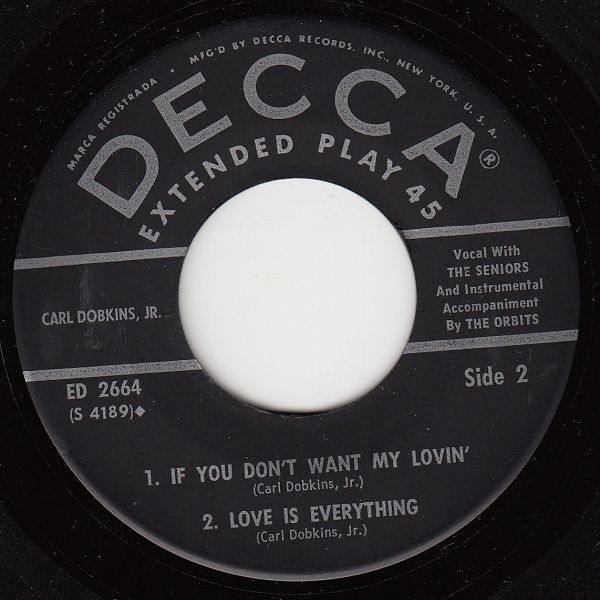 08 58....12 134 A....CARL DOBKINS JR. With The Seniors..If You Don't Want My Lovin'/ B....Love Is Everything (DECCA 30656)