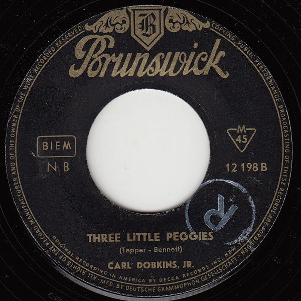Volker hat mich daran erinnert, dass ich noch einige Dobkins-Singles ungepostet habe, was ich jetzt ändern werde. Die BRUNSWICK 12 211 habe ich selbst auch, nur ist meine schon etwas abgegriffen. Da hat Volker gerade die Richtige erwischt. Diese Single hat übrigens den Prüf-Code M 59, also Dezember 1959, kam aber erst im Februar 1960 einschließlich der STEREO-Ausgabe auf den Markt. Vielleich war zu Weihnachten zuviel los. Wenn ich nicht irre, dürfte es die einzige Stereo-Single von Dobkins auf der deutschen BRUNSWICK sein.