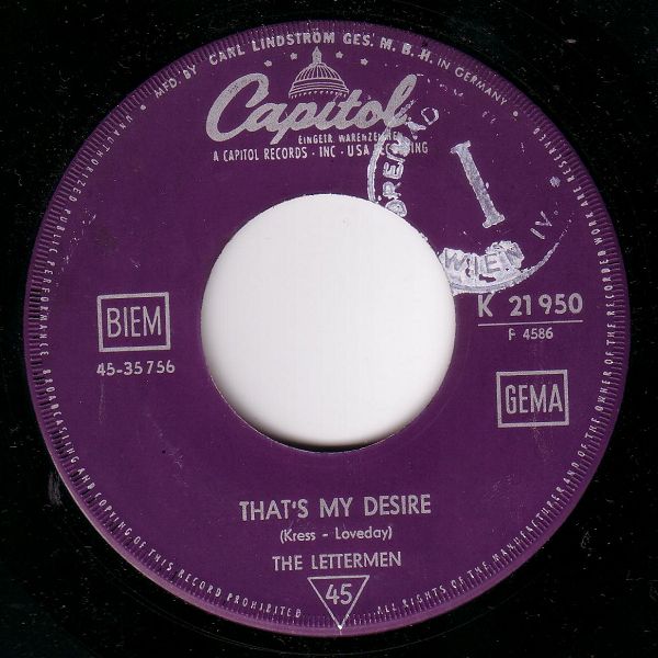 06 61….4586….THE LETTERMEN Orchestra Conducted by Jimmie Haskell..That's My Desire (45-35756)/The Way You Look Tonight (45-35753)