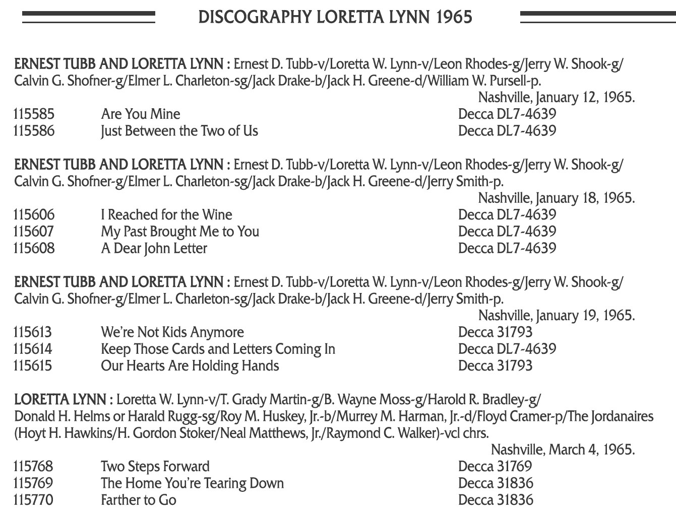 | Information: | LORETTA LYNN - THE OTHER WOMAN |