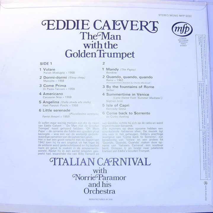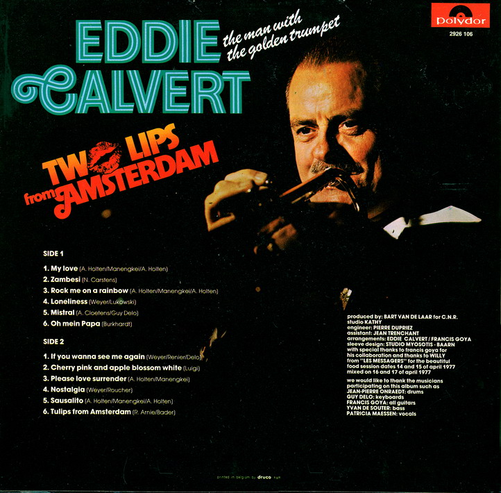 Der Trompeter Eddie Calvert wurde am 15. März 1922 in Preston, Lancashire, England, als Albert Edward Calvert geboren und verstarb am 7. August 1978 in Johannesburg, Republik Südafrika, wo er seit 1968 lebte, an einem Herzinfarkt.