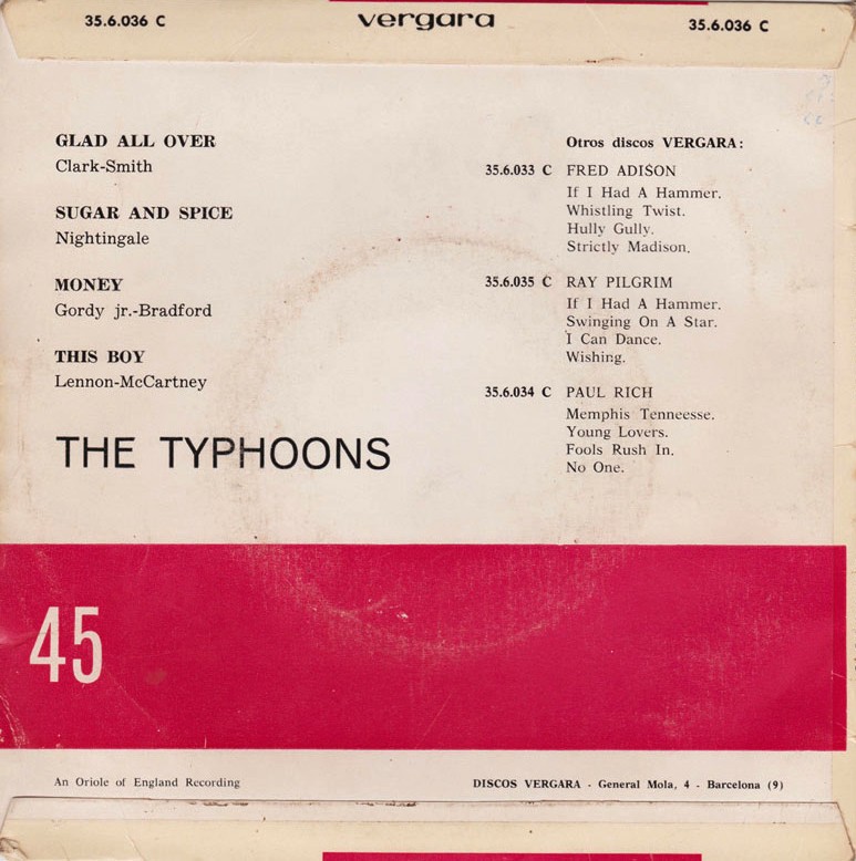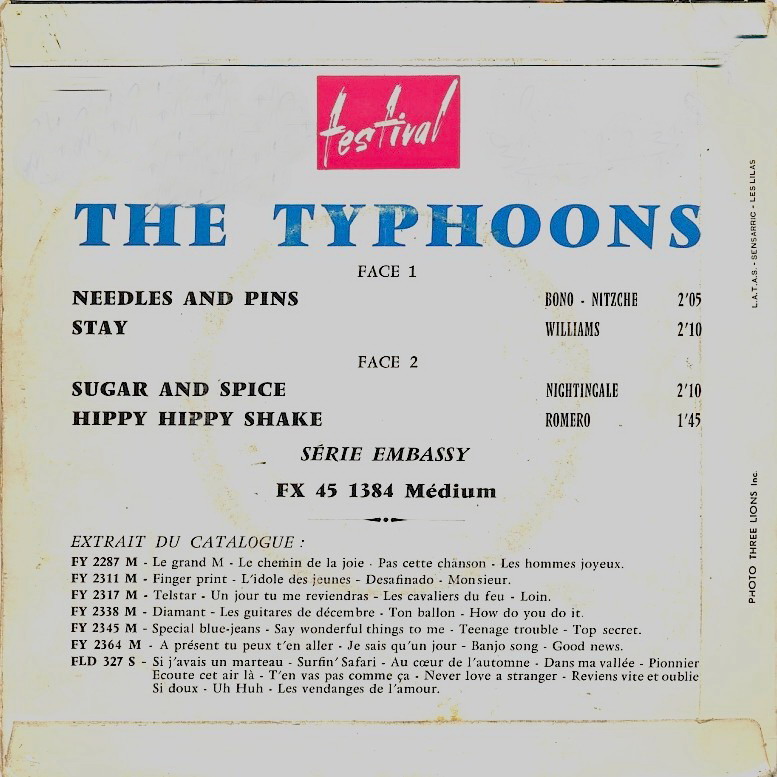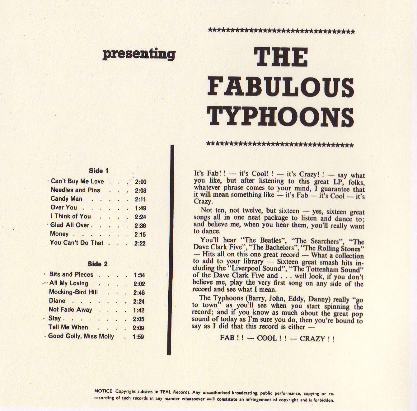 The Typhoons name was coined in February 1963 as Embassy found themselves covering increasingly more records by beat bands rather than the more traditional solo singer recordings that had dominated the hit parade in previous years.