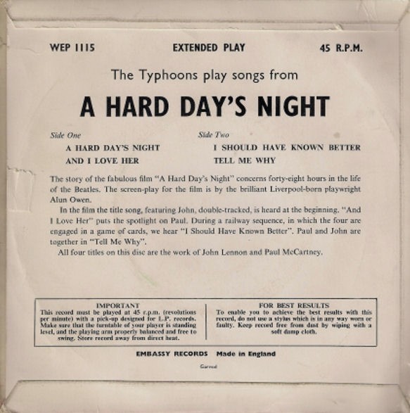 A Hard Day's Night (EP by The Typhoons being Ray Pilgrim and Mike Redway) "A Hard Day's Night"