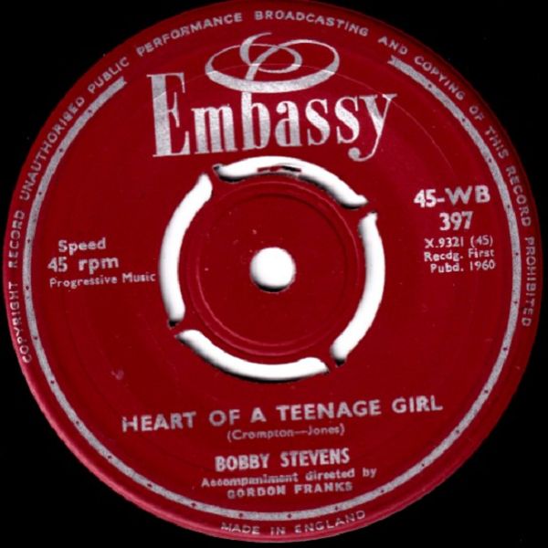 "Cradle of Love" / Hear of a Teenage Girl" (as Bobby Stevens)
