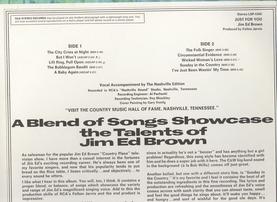 Habe mal kurz die Disco von Jim Ed Brown, von den Browns hierher verschoben, Billy