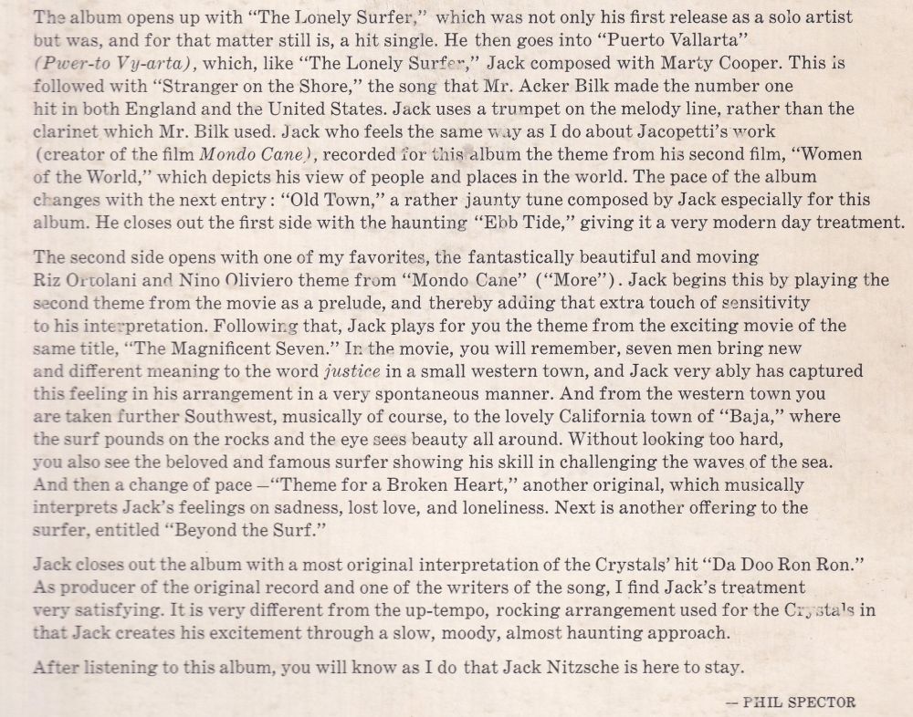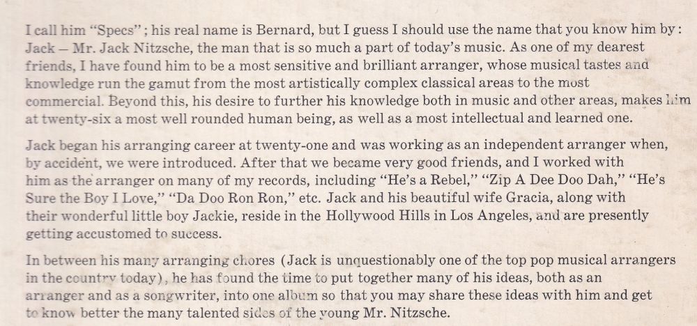 Der Musiker (Saxophon, Klavier u. a.), Bandleader, Arrangeur, Produzent und Songwriter Jack Nitzsche wurde am 22. April 1937 in Chicago, Illinois, als Bernard Alfred Nitzsche geboren und verstarb am 25. August 2000 im Hollywood's Queen of Angels - Hollywood Presbyterian Medical Center in Kalifornien erst 63-jährig an Herzstillstand, nachdem er bereits 1998 einen Schlaganfall erlitten hatte. Nitzsche arbeitete unter anderem auch mit Lee Hazlewood, Phil Spector und den Rolling Stones zusammen.