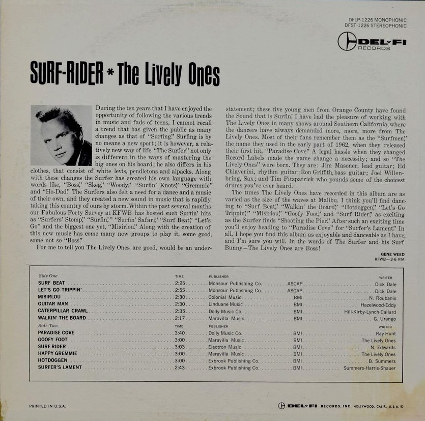 | Information: | LIVELY ONES & VARIOUS ARTISTS - DEL-FI LP DFLP-1235 |