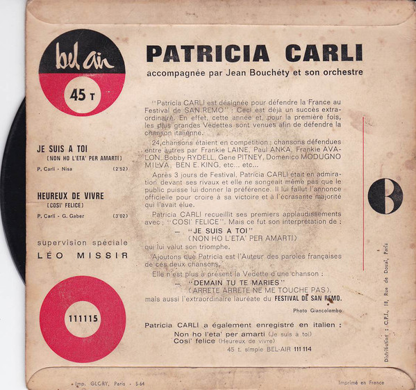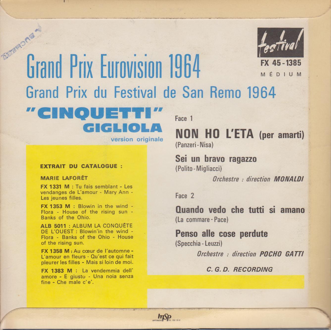 Sie gewann beides 1964, das San Remo Festival und den Grand Prix D'Eurovision. Hier die EP mit dem Siegertitel