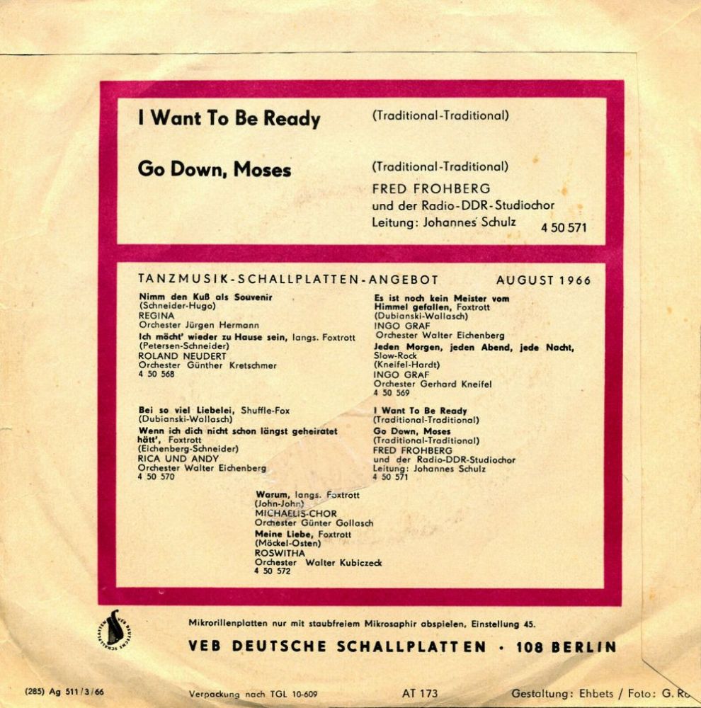 ?? 63….4 50 368 A….Fred Frohberg u. der Radio-DDR-Studiochor Ltg.: Günter Oppenheimer..Joshua Fit The Battle Of Jericho/ B….The Gospel Train