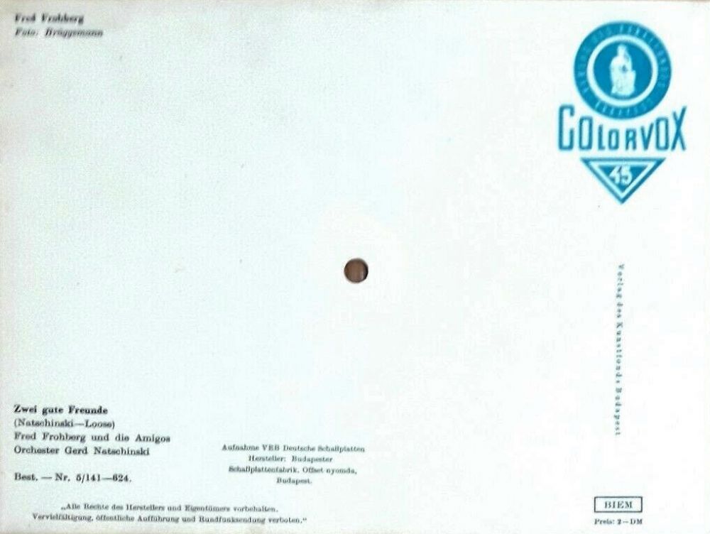 08 58....345 067 PF....Fred Frohberg und die Amigos Gerd Natschinski m. s. Orchester..Zwei gute Freunde/Vergiß die Heimat nicht (DDR-78er: AMIGA 1 50 658)