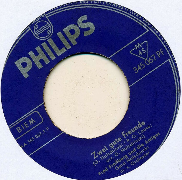 ?? 59....4 50 105 A....Fred Frohberg u. d. Amigos Gerd Natschinski m. s. Orchester Zwei gute Freunde/ B Helga Brauer und die Ping Pongs Orchester Gerhard Honig Ein schwarzer Schornsteinfeger