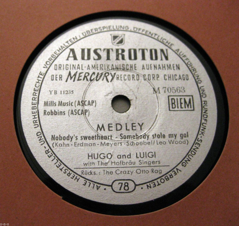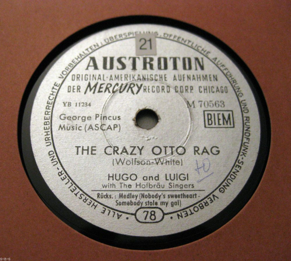 02 55....70563-X45....HUGO AND LUIGI With The Hoffbrau Singers..The Crazy Otto Rag (YW11234)/Medley Nobody's Sweetheart - Somebody Stole My Gal (YW11235)