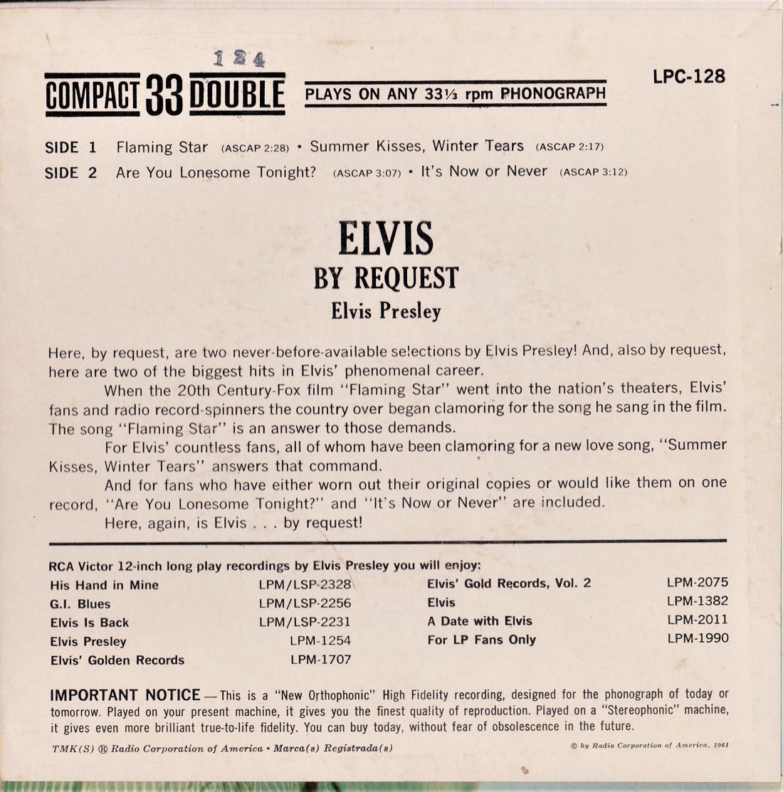 die nicht von der LP "Everything Is A-OK" (RCA LSP 2782) aus 1964 stammen sondern