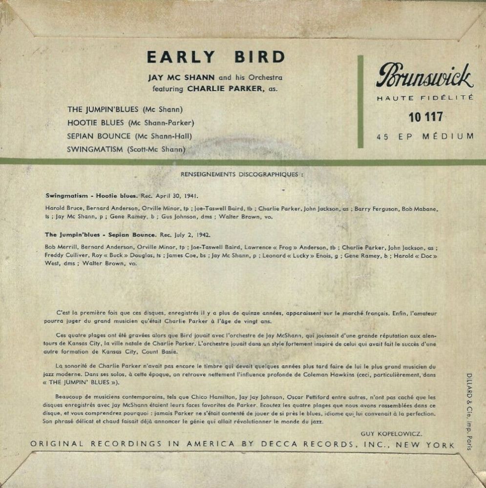Im Dezember 1943 verließ Parker das erweiterte Orchester. “Say Forward, I'll March“, später im Lionel Hampton-Buch als “Hamp's Got A Duke“ aufgeführt, enthält ein großartiges Tenorsolo von Paul Quinichette, der wie Parker auch sein Aufnahmedebüt mit Jay McShanns unvergesslicher Big Band gab.