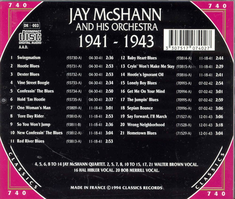 Nach seiner Entlassung aus der Armee reorganisierte Jay McShann eine kurzlebige Big Band, von der es keine offiziellen Studioaufnahmen gibt.