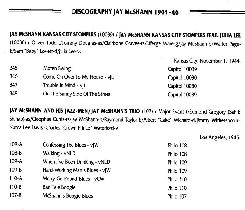 1946 war McShann hauptsächlich in Kalifornien aktiv und nahm Aufnahmen auf und spielte in verschiedenen Clubs im Raum Los Angeles.
