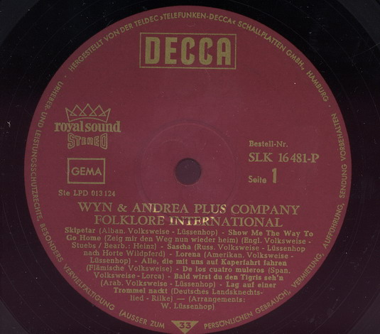 spezialisiert auf folkloristisches Material als WYN und ANDREA u. AMBASSADORS,