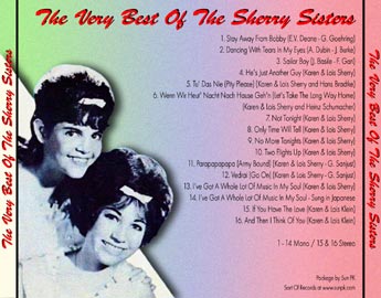 ich bin der von Thorsten genannte "Sammlerkollege" der diese diese Suche nach den Sherry Sisters ausgelöst hatte. Meine damalige Anfrage bei Bear Family Records (1000 Nadelstiche) ergab, dass die beiden deutschen Coverversionen dort noch nicht bekannt waren. Durch Recherchen im www. bin ich dann auf einen Anbieter aus USA gestoßen, der eine Privat- CD mit 16 Aufnahmen offeriert hatte (mit den beiden von mir gesuchten deutschen Coverversionen) Nach voran gegangener Korrespondenz, konnte ich diese CD erwerben, die nunmehr in meinem Archiv schlummert. Die Qualität der Aufnahmen ist sehr gut. Da noch nicht die kompletten Veröffentlichungen auf der CD vorhanden sind,